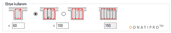 Donatıpro™ TS500 standartlarına ve deprem yönetmeliğine uygun olarak tasarlanmıştır. Bu nedenle etriye seçimini de kiriş genişliğine göre otomatik olarak yapar. Bununla birlikte etriye ayarlarını kendiniz de yapabilirsiniz. Ayarlarda etriye seçenekleri neler?